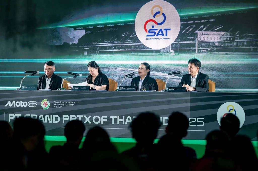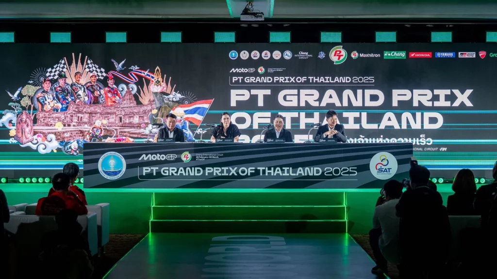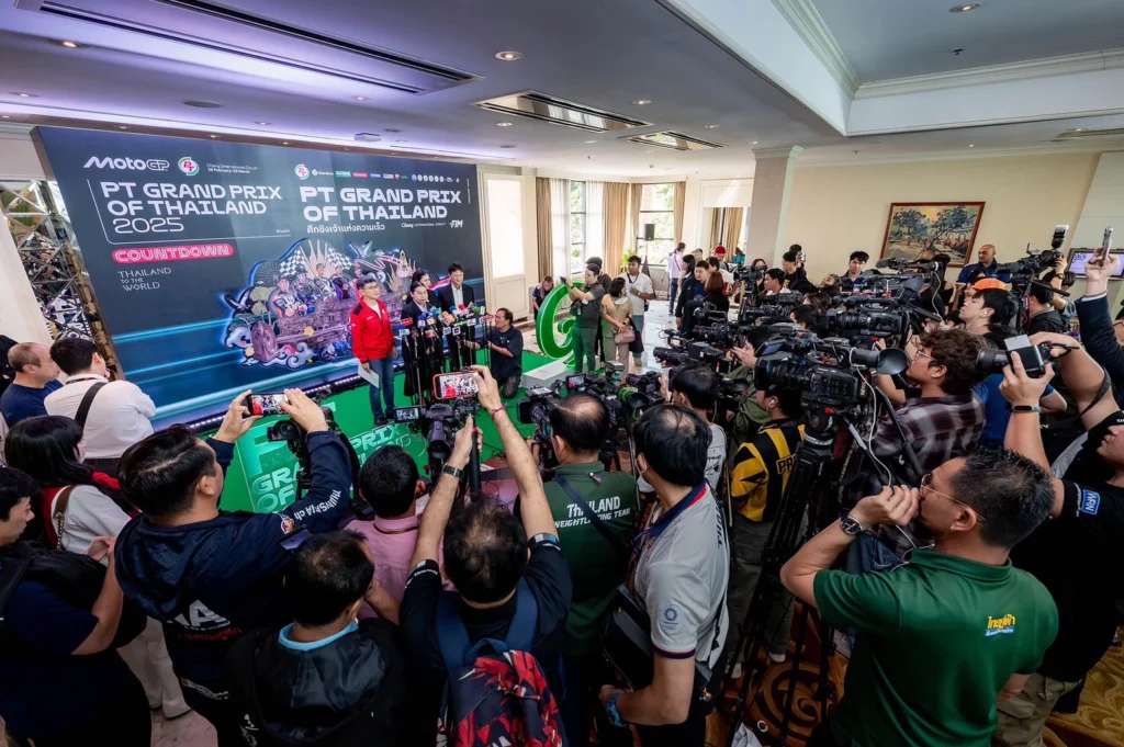กระทรวงการท่องเที่ยวและกีฬา โดยการกีฬาแห่งประเทศไทย จัดแถลงข่าวนับถอยหลังการแข่งขันรถจักรยานยนต์ทางเรียบชิงแชมป์โลก หรือโมโตจีพี ที่ประเทศไทยเป็นเจ้าภาพ ภายใต้ชื่อรายการ “PT Grand Prix of Thailand 2025” (พีที กรังด์ปรีซ์ ออฟ ไทยแลนด์) ศึกมอเตอร์สปอร์ตพรีเมียมที่มีผู้ชมมากกว่า 800 ล้านคนทั่วโลก ที่ไทยได้รับบทบาทสำคัญ ทั้ง การแถลงเปิดฤดูกาล Season Premier ที่ One Bangkok กรุงเทพ โดยดอร์น่าสปอร์ต วันที่ 9 ก.พ. ต่อด้วย Pre-Season Test 12-13 ก.พ. และ Main Race 28 ก.พ.-2 มี.ค.68 ที่สนามช้าง อินเตอร์เนชั่นแนล เซอร์กิต จ.บุรีรัมย์ โดยประเทศไทยเป็นเจ้าภาพปีที่ 6