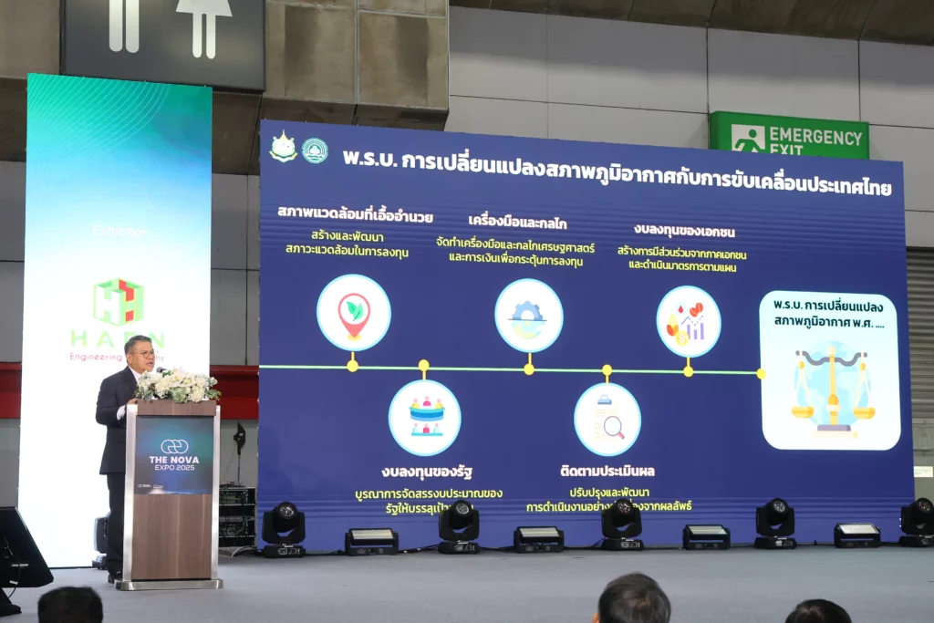 ด้วยภารกิจดังกล่าว กรมฯ กำลังเร่งสร้างการเปลี่ยนผ่านที่เป็นธรรมทั้งนโยบายด้านสภาพภูมิอากาศที่จริงจังและเตรียมร่าง พ.ร.บ. การเปลี่ยนแปลงสภาพภูมิอากาศ เพื่อสร้างภูมิคุ้มกันต่อผลกระทบและเพิ่มขีดความสามารถในการแข่งขันของประเทศอย่างยั่งยืน ซึ่งงาน The NOVA Expo 2025 ถือเป็นหนึ่งงานสำคัญที่จะช่วยให้ไทยเดินตามแนวทางที่ประกาศไว้กับที่ประชุม COP ได้