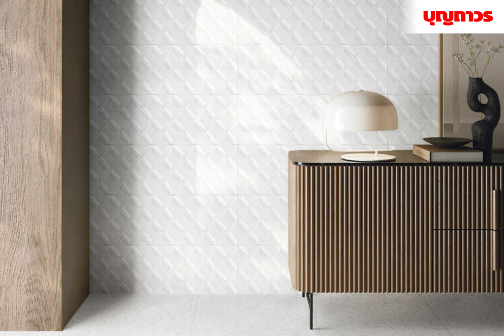 NEUTRAL WHITE — Sophisticated Luxury เสน่ห์แห่งความหรูหรา เรียบง่ายในแบบคลาสสิกของสีขาว ถ่ายทอดผ่านดีไซน์กระเบื้อง เน้นความโดดเด่นในทุกพื้นที่ เงางาม แวววาวเล่นแสงไฟ ช่วยสะท้อนความงดงามของสีขาวอย่างมีมิติ พร้อมเสริมด้วยลวดลายที่ได้รับแรงบันดาลใจจากรูปทรงกะรัตเพชรและงานคราฟต์สุดประณีต เพิ่มเอกลักษณ์เฉพาะตัว และความพิเศษให้กระเบื้องดูสวยหรู ไม่ซ้ำใครอย่างแท้จริง