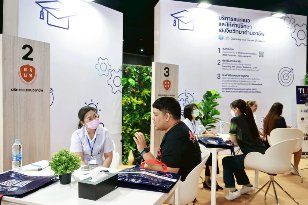 และภายหลังพิธีเปิด นางสาวพิมพ์พร ชีวานันท์ เลขานุการรัฐมนตรีว่าการกระทรวงศึกษาธิการ พร้อมคณะผู้บริหารได้เยี่ยมชมนิทรรศการภายในงาน ซึ่งประกอบด้วยกิจกรรมแนะแนวอาชีพกว่า 50 อาชีพ บริการทดสอบศักยภาพ การให้คำปรึกษาด้านอาชีพ เวิร์กชอปฝึกทักษะอาชีพ และเวทีเสวนาจากผู้เชี่ยวชาญในสายงานต่าง ๆ ตลอดจนการเปิดตัวบริการแนะแนวการเรียนรู้สู่อาชีพ (Learning and Careers Guidance – LCG) บนแพลตฟอร์มดิจิทัล “EWE” ที่ช่วยให้ประชาชนสามารถวางแผนพัฒนาตนเองและสนับสนุนการเรียนรู้ตลอดชีวิต ตลอดช่วงวัย