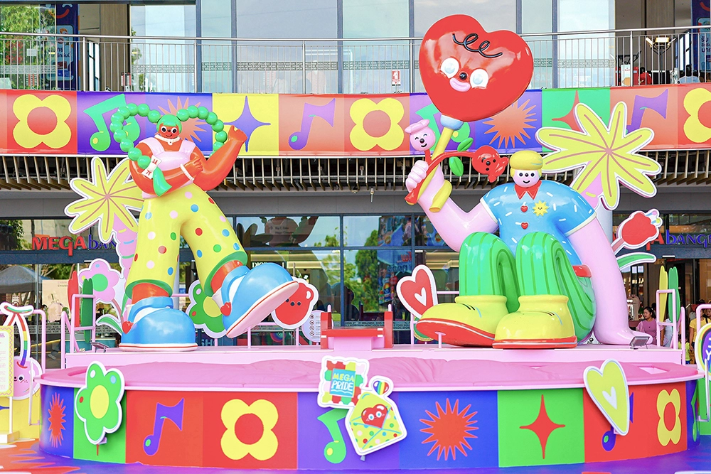 ภายใต้แคมเปญ “MEGA PRIDE 2025” เมกาบางนาได้สร้างสรรค์แลนด์มาร์คศิลปะร่วมสมัยที่ออกแบบโดย 4 ศิลปินรุ่นใหม่ ได้แก่ give.me.museums หรือ ออย–คนธรัตน์ เตชะไตรศร, 22mm.t หรือ มะเหมี่ยว – ฐิติพร กลิ่นทโชติ, shittak หรือ ชายแดน เทียมไสย์ และ Fluffy Omelet หรือ เภรย – ณัชริญา เหล่าศรีสิน ซึ่งเป็นการต่อยอดจากผลงานที่จัดแสดงภายในงาน MEGA ART JOURNEY 2025 ด้วยการผสานสีรุ้งอันเป็นสัญลักษณ์ของ PRIDE MONTH เพื่อร่วมเฉลิมฉลองถึงความงดงามของอารมณ์ ความรู้สึก และความหลากหลายของผู้คนในสังคม ผลงานเหล่านี้จะจัดแสดงอยู่ในพื้นต่างๆ ของเมกาบางนาถึงวันที่ 30 มิถุนายน 2568