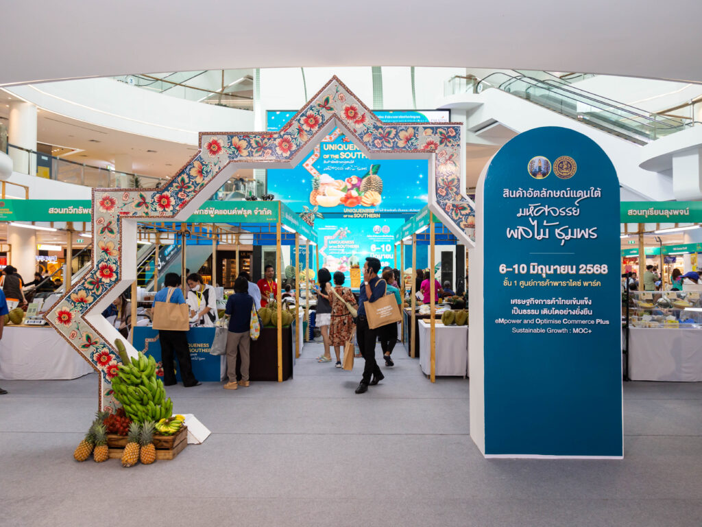 วันศุกร์ที่ 6 มิถุนายน 2568 ณ ชั้น 1 ศูนย์การค้าพาราไดซ์ พาร์ค นายเธียรชัย ชูกิตติวิบูลย์ ผู้ว่าราชการจังหวัดชุมพร เป็นประธานพิธีเปิดงาน“UNIQUENESS OF THE SOUTHERN”ซึ่งเป็นกิจกรรมภายใต้โครงการสินค้าอัตลักษณ์แดนใต้ มหัศจรรย์ผลไม้ชุมพร การจัดแสดง/จําหน่ายสินค้าและการเจรจาธุรกิจ ปีงบประมาณ พ.ศ.2568 จัดขึ้นโดยสำนักงานพาณิชย์จังหวัดชุมพร