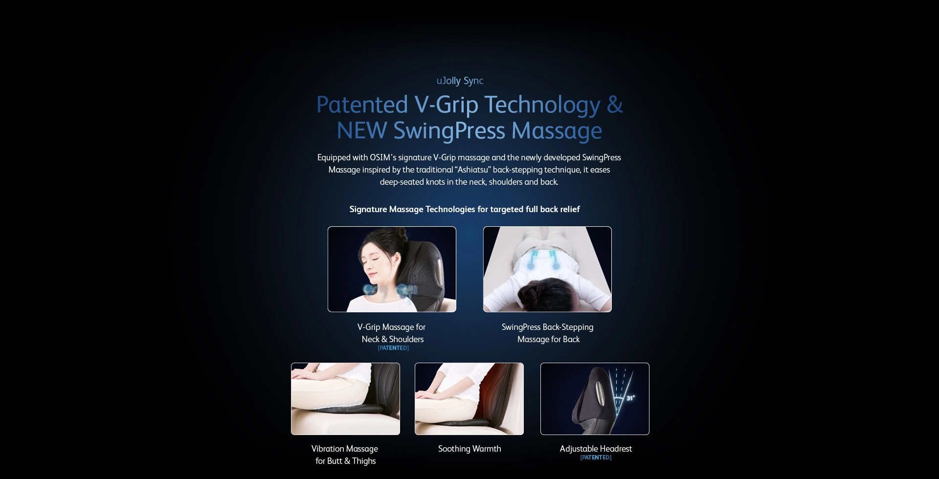 • เชื่อมต่อ OSIM Ecosystem: ใช้งานร่วมกับ uJolly Sync เพื่อประสบการณ์นวดแบบเต็มตัว ออกแบบการนวดได้มากกว่า 35 โปรแกรม