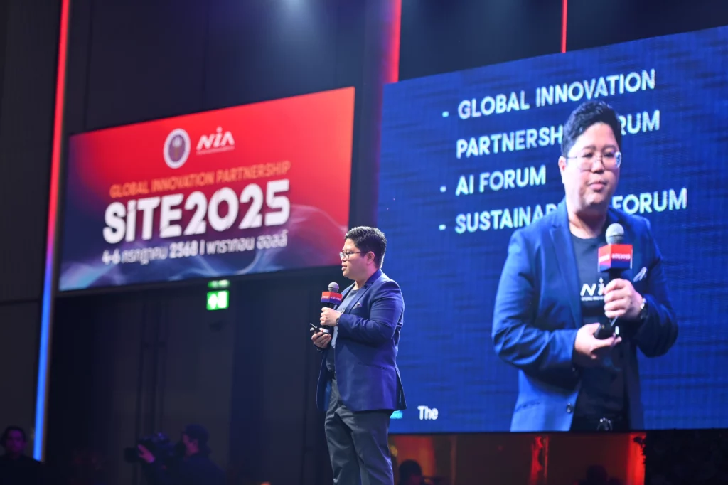 งาน SITE 2025 จัดขึ้นภายใต้แนวคิด “Global Innovation Partnership – AI & Sustainability: The Next Era of Innovation” เพื่อยกระดับประเทศไทยสู่การเป็นศูนย์กลางความร่วมมือด้านนวัตกรรมในระดับภูมิภาค โดยมุ่งส่งเสริมการเชื่อมต่อสตาร์ตอัปไทยกับเครือข่ายนานาชาติในเชิงยุทธศาสตร์ ซึ่งในปีนี้มีตัวแทนจากประเทศพันธมิตรกว่า 11 ประเทศทั่วโลก ได้แก่ ญี่ปุ่น เกาหลี ฮ่องกง สิงคโปร์ ฟินแลนด์ สวีเดน เช็ก ฮังการี สวิตเซอร์แลนด์ กาตาร์ และชิลี เข้าร่วมงาน พร้อมการสนับสนุนจากหน่วยงานภาครัฐและเอกชนทั้งในและต่างประเทศรวมกว่า 350 แห่ง
