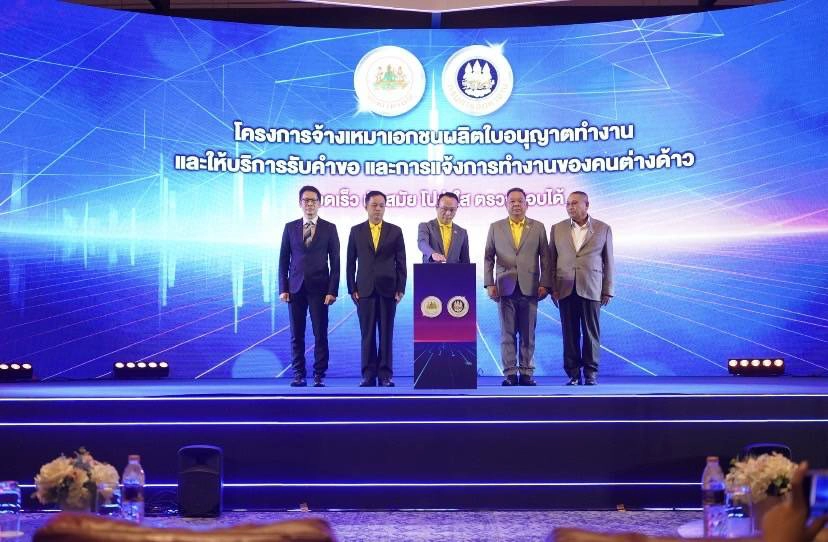 วันที่ 30 กรกฎาคม 2568 นายสมชาย มรกตศรีวรรณ อธิบดีกรมการจัดหางาน เป็นประธานในพิธีแถลงข่าว เพื่อประชาสัมพันธ์โครงการจ้างเหมาเอกชนผลิตใบอนุญาตทำงานและให้บริการรับคำขอและการแจ้งการทำงานของคนต่างด้าว (Outsourcing Service) อย่างเป็นทางการ โดยมีนายจำนงค์ ทรงเคารพ ผู้ตรวจราชการกรม กรมการจัดหางาน กล่าวรายงาน ผู้บริหารกระทรวงแรงงาน ผู้แทนจากภาคเอกชน ร่วมเป็นเกียรติ ณ โรงแรมอัศวิน แกรนด์ คอนเวนชั่น กรุงเทพมหานคร ห้องอัศวิน แกรนด์ บอลรูม B – C ชั้น 4 เพื่อมุ่งยกระดับการให้บริการด้านแรงงานต่างด้าวให้ทันสมัย สะดวก รวดเร็ว และโปร่งใสมากยิ่งขึ้น