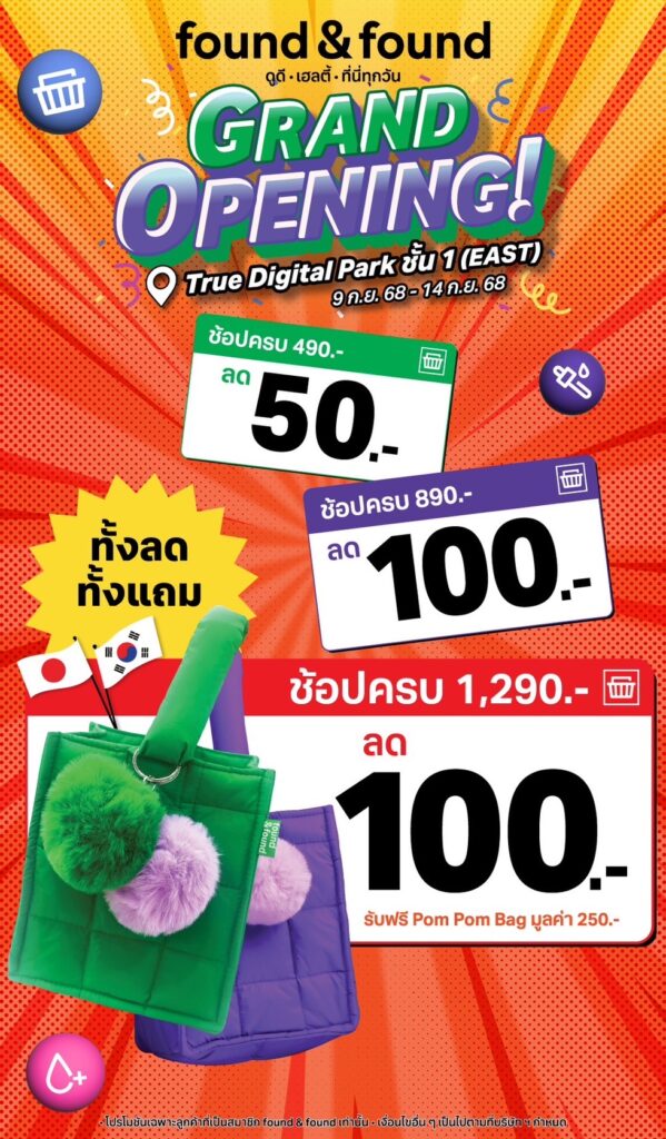 มาตามคำเรียกร้อง “found & found” บิวตี้เดสติเนชันสุดฮอตจากญี่ปุ่น–เกาหลี มาหาสาวกบิวตี้ชาวสุขุมวิท ถึงที่ “True Digital Park” ชั้น 1 ฝั่ง EAST แล้ว พร้อมยกทัพบิวตี้ไอเทมชิ้นเด็ดแบรนด์ดังมากมายที่พร้อมให้ทุกคนได้มาอัปเดตเทรนด์ความงามก่อนใคร อาทิเช่น BIOHEAL BOH, BRINGGREEN, ROUND A’ROUND, WAKEMAKE, Colorgram, FILLIMILLI และ IDEAL FOR MEN รวมถึงสินค้าจากญี่ปุ่นสุดฮอตอย่าง DR ZERO, Cica Method และ S Select, Off&Relax, Mediheal, SKIN1004, Beauty Of Joseon, LuLuLun, Anessa และ ANUA Hetras Body Lotion เพื่อยกระดับการช้อปปิ้งให้สนุกได้ง่าย ๆ อัพลุคสวยครบจบในที่เดียว พร้อมปล่อยโปรแรงแซงทุกโปรกับส่วนลดปัง ๆ ยิ่งซื้อ ยิ่งคุ้ม พร้อมรับของพรีเมียมฟรีที่นี่ที่เดียว ตั้งแต่วันที่ 9-14 กันยายน 2568 นี้ เท่านั้น!!