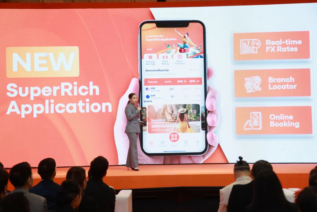 คุณปิยะ ตันติเวชยานนท์ ประธานเจ้าหน้าที่บริหาร พร้อมด้วย คุณณัชชา ปุณณพัฒน์ ผู้อำนวยการฝ่ายพัฒนาธุรกิจ และคณะผู้บริหาร ได้แก่ คุณปราณี สิริพงศาธร, คุณธนนันท์ ตันติเวชยานนท์, คุณศรรินทร์ ตันติเวชยานนท์, คุณวิศัลยา บุญญะฐาณิศร์ และคุณธริดา สินธนาเลอเดช บริษัท ซุปเปอร์ริช เคอเรนซี่ เอ็กซ์เชนจ์ (1965) จำกัด หรือ ซุปเปอร์ริช 1965 (สีส้ม) จัดงานฉลองครบรอบ 60 ปี ภายใต้แนวคิด “60 Years of Trust, Moving Forward Together” ตอกย้ำความเป็นผู้นำอันดับ 1 ด้านการแลกเปลี่ยนเงินตราต่างประเทศของไทย พร้อมเปิดตัว “น้องซุปเปอร์” เพื่อนร่วมทาง (Travel Partner) ที่สะท้อนบุคลิกสนุกสนาน เป็นมิตร และเข้าถึงง่าย พร้อมประกาศวิสัยทัศน์ขับเคลื่อนธุรกิจสู่ดิจิทัล เชื่อมต่อบริการทั้งสาขาและออนไลน์ ยกระดับประสบการณ์แลกเงินให้สะดวก รวดเร็ว และปลอดภัยยิ่งขึ้น ผ่าน 3 บริการหลัก ได้แก่ Branch Excellence ยกระดับความเป็นเลิศของสาขา, SuperRich Application และเตรียมออกบริการใหม่ e-Wallet รองรับนักท่องเที่ยวทั่วโลกตอบรับเทรนด์สังคมไร้เงินสด