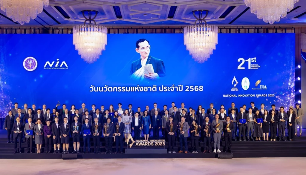 1 ตุลาคม 2568 กรุงเทพฯ – กระทรวงการอุดมศึกษา วิทยาศาสตร์ วิจัยและนวัตกรรม (อว.) โดยสำนักงานนวัตกรรมแห่งชาติ (องค์การมหาชน) หรือ NIA จัดพิธีมอบรางวัลนวัตกรรมเนื่องใน ‘วันนวัตกรรมแห่งชาติ ประจำปี 2568’ ซึ่งตรงกับวันที่ 5 ตุลาคมของทุกปี เพื่อเทิดพระเกียรติและรำลึกถึงพระบาทสมเด็จพระบรมชนกาธิเบศร มหาภูมิพลอดุลยเดชมหาราช บรมนาถบพิตร ซึ่งทรงมีพระอัจฉริยภาพยิ่งด้านนวัตกรรมจากโครงการอันเนื่องมาจากพระราชดำริ ‘แกล้งดิน’ ในฐานะ ‘พระบิดาแห่งนวัตกรรมไทย’ พร้อมประกาศผลสุดยอดผลงานนวัตกรรมไทยจาก ‘รางวัลนวัตกรรมแห่งชาติ’ซึ่งเป็นรางวัลที่เชิดชูเกียรตินวัตกรและองค์กรนวัตกรรมไทยผู้ริเริ่มสร้างสรรค์ผลงานนวัตกรรมที่โดดเด่น และเป็นประโยชน์ต่อองค์กร สังคม และประเทศ ทั้งภาครัฐ ภาคเอกชน และภาคการศึกษา นอกจากนี้ ยังมีการมอบรางวัลนวัตกรรมแห่งประเทศไทย และรางวัลนวัตกรรมข้าวไทย ซึ่งเป็นรางวัลนวัตกรรมที่ NIA ได้ร่วมดำเนินการมาอย่างต่อเนื่องเช่นกัน