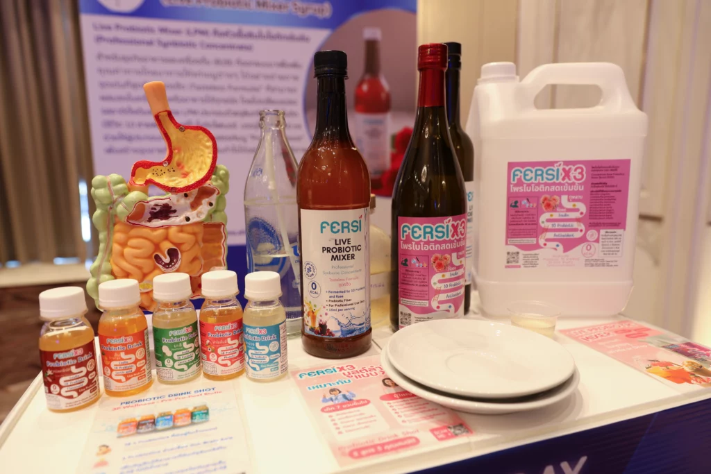 • FERSI X3 – เครื่องดื่มโปรไบโอติกช็อตเพื่อสุขภาพลำไส้และจิตใจ รวม Prebiotic, Probiotic และ Postbiotic ในขวดเดียว ไม่มีน้ำตาล เก็บได้นานโดยไม่ต้องแช่เย็น