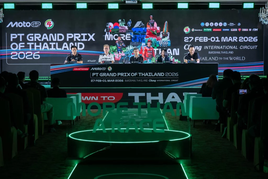กระทรวงการท่องเที่ยวและกีฬา โดยการกีฬาแห่งประเทศไทย ผนึกกำลังพันธมิตรภาครัฐและเอกชน แถลงข่าวนับถอยหลังการแข่งขันรถจักรยานยนต์ชิงแชมป์โลก “โมโตจีพี” ประจำปี 2569 รายการ “พีที กรังด์ปรีซ์ ออฟ ไทยแลนด์ 2026” (PT Grand Prix of Thailand 2026) ซึ่งประเทศไทยยังคงได้รับความไว้วางใจให้เป็นเจ้าภาพสนามเปิดฤดูกาลต่อเนื่องเป็นปีที่ 2 พร้อมรับหน้าที่สนามทดสอบก่อนเปิดฤดูกาล (Pre-Season Test) ระหว่างวันที่ 21–22 ก.พ. และการแข่งขันสนามแรกของฤดูกาล ระหว่างวันที่ 27 ก.พ. – 1 มี.ค. 2569 ที่ สนามช้าง อินเตอร์เนชั่นแนล เซอร์กิต จังหวัดบุรีรัมย์ ตอกย้ำศักยภาพไทยในเวทีโลก พร้อมสร้างแรงกระเพื่อมทางเศรษฐกิจ การท่องเที่ยวต่อเนื่องทั่วประเทศ และประสบการณ์ระดับโลกให้แฟนมอเตอร์สปอร์ต พร้อมไฮไลต์สำคัญกับการเผยโฉม ‘โทรฟี่โมโตจีพี สนามประเทศไทย” งานออกแบบเชิงสัญลักษณ์ระดับโลก เปรียบเสมือนคบเพลิงแห่งการเปิดศักราชใหม่ ถ่ายทอดบทบาทประเทศไทยในฐานะสนามเปิดฤดูกาล ผสานอัตลักษณ์ไทยผ่าน Track Layout สนามช้างฯ สีธงชาติไทย และผ้าลายพระราชทาน “สิริวชิราภรณ์” สะท้อนพลังวัฒนธรรมท้องถิ่นที่หลอมรวมกับเวที World Grand Prix อย่างสง่างาม