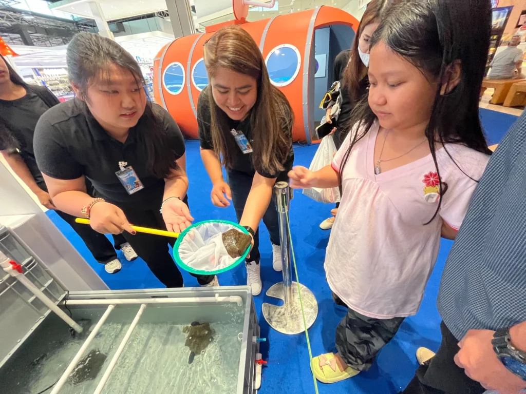 • TOUCH POOL เปิดประสบการณ์สัมผัสสัตว์ทะเลตัวจริงแบบใกล้ชิด อาทิ ปลาดาว ฉลามกบ และเม่นทะเล พร้อมคำแนะนำจากผู้เชี่ยวชาญ เพียงแสดงใบเสร็จกิน-ช้อปครบ 500 บาท (รับสิทธิ์ร่วมกิจกรรมตามรอบเวลาที่กำหนด)
