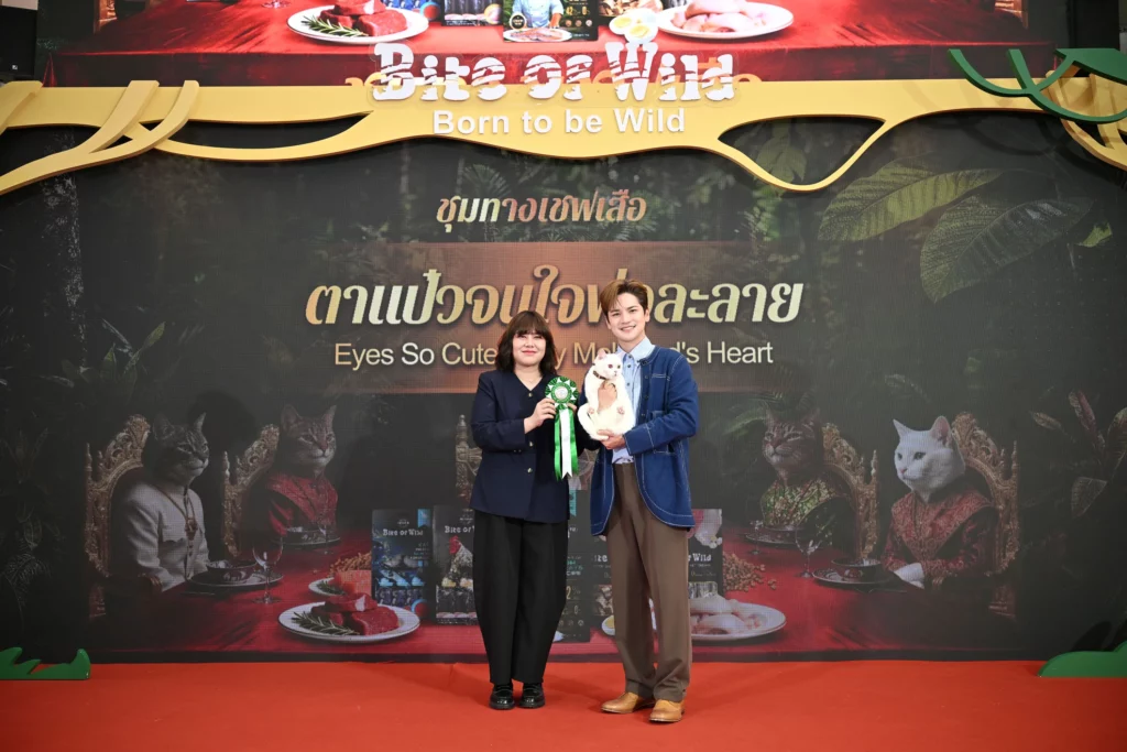 Bite of Wild “ชุมทางเชฟเสือ” นอกจากเสิร์ฟผลิตภัณฑ์อาหารแมวโฮลิสติกในระดับพรีเมียมแล้ว ยังแน่นไปด้วยกิจกรรมมากมายให้เหล่า Cat Lovers ได้พาน้องแมวมาเปิดประสบการณ์และปลุกพลังเสือให้ตื่น อาทิ กิจกรรมไฮไลท์อย่าง Cat Met Gala Red Carpet ให้เหล่าน้องแมวทุกตัวได้เฉิดฉายและเปล่งประกายเสน่ห์เฉพาะตัวในแบบฉบับของตัวเอง งานประกาศรางวัล Wild Moment Awards ให้กับน้องแมวที่มีความโดดเด่นในแต่ละแบบทั้งหมด 7 รางวัล 1) รางวัลสายล่าตัวจริงแห่งพงไพร 2) รางวัลพลังล้นตังแต่เกิด 3) รางวัลเด้งดึงทะลุเพดาน 4) รางวัลมือไวสายสวบตัวตึง 5) รางวัลคํารามสะเทือนชามข้าว 6) รางวัลล่องหนจอมแฝงกาย ที่คัดเลือกผ่านกิจกรรมเฟ้นหาสุดยอดแมวที่ทาง Bite of Wild ให้เหล่าทาสรักส่งโมเมนต์น้องแมวเข้ามาในช่องทางออนไลน์ และรางวัลสุดท้ายรางวัลพิเศษ 7) ตาแป๋วจนใจพ่อละลาย ที่มอบให้ เต๋า – เศรษฐพงศ์ เพียงพอ และ น้องแฮปปี้ คู่ดูโอ้พ่อแมวกับลูกแมวตัวน้อยที่สามารถละลายหัวใจของทุกคนได้อย่างอ่อนโยนด้วยดวงตากลมโตใสซื่อ ก่อนลงจากเวที เต๋าได้กล่าวถึงความรู้สึกว่า “ดีใจมากครับสำหรับรางวัลนี้ที่ทาง Bite of Wild มอบให้ เพราะนี้เป็น ครั้งแรกเลยที่พาลูกสาวออกงาน ได้มาเจอเหล่าทาสแมวด้วยกัน ยังไงก็ขอฝากเนื้อฝากตัวน้องแฮปปี้และทาสรักแมวอย่างผมไว้ด้วยนะครับ” พร้อมทิ้งท้ายถึงการเลือกอาหารให้กับน้องแฮปปี้ว่า “ทาสอย่างเราก็ต้องเลือกผลิตภัณฑ์อาหารที่พรีเมียมให้เจ้านายที่เรารัก ต้องสารอาหารครบถ้วนตามโภชนาการที่น้องแมวต้องการ มีพรีไบโอติกส์ โพรไบโอติกส์ ที่ดูแลเรื่องระบบลำไส้ และโปรตีนที่เพียงพอเพื่อเสริมสร้างกล้ามเนื้อ น้องจะได้ระบบย่อยอาหารดี สุขภาพดีจากภายในสู่ภายนอก ไม่เจ็บป่วยและอยู่กับเราไปนานๆอย่างแข็งแรง” ปิดท้ายงานด้วย ปาร์ตี้คาร์นิวัล สุดลึกลับที่พร้อมปลุกพลังเสือของคุณและน้องแมวให้ได้ปลดปล่อยอย่างอิสระ